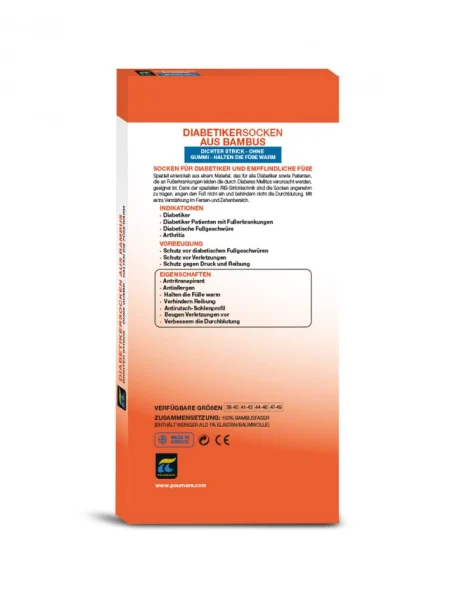 Specially designed with material suitable for all diabetic patients and patients with foot complications from diabetes mellitus. Thanks to the special RIB knitting, they are easy to wear, do not tighten the leg and do not obstruct arterial blood circulation. With extra reinforcement on the heel and toes.